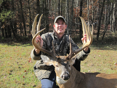 We haven't yet started general firearms season/dog season here in Louisa, VA, but I wanted to submit this picture to highlight me taking advantage of the new rule change in VA allowing hunters to use dogs on leads to track wounded/killed deer/bear. I shot this buck at 80yds with my .50cal Knight Muzzleloader shooting 150gr pyrodex pellets, and 250gr TC shockwave ballistic tips. The buck was in a green field, and ran only about 50 yds total, but was in a dense oak thicket. I waited 30 minutes in which time I came home and got my beagle Cole. I returned to the field, and Cole who's just under a year old, literally dragged me into the woods and right up to my buck of a lifetime, his second recovery this week after he found a doe I shot who ran 50 yards into a thicket and across a creek. The buck gross scored 173 7/8" but after deductions scored 165 3/8". The buck was killed on a QDMA farm we've managed extensively for the past decade. This is the 2nd buck over 145" we've harvested in the last two years, and we've had 3 others score in the 130-140 range.